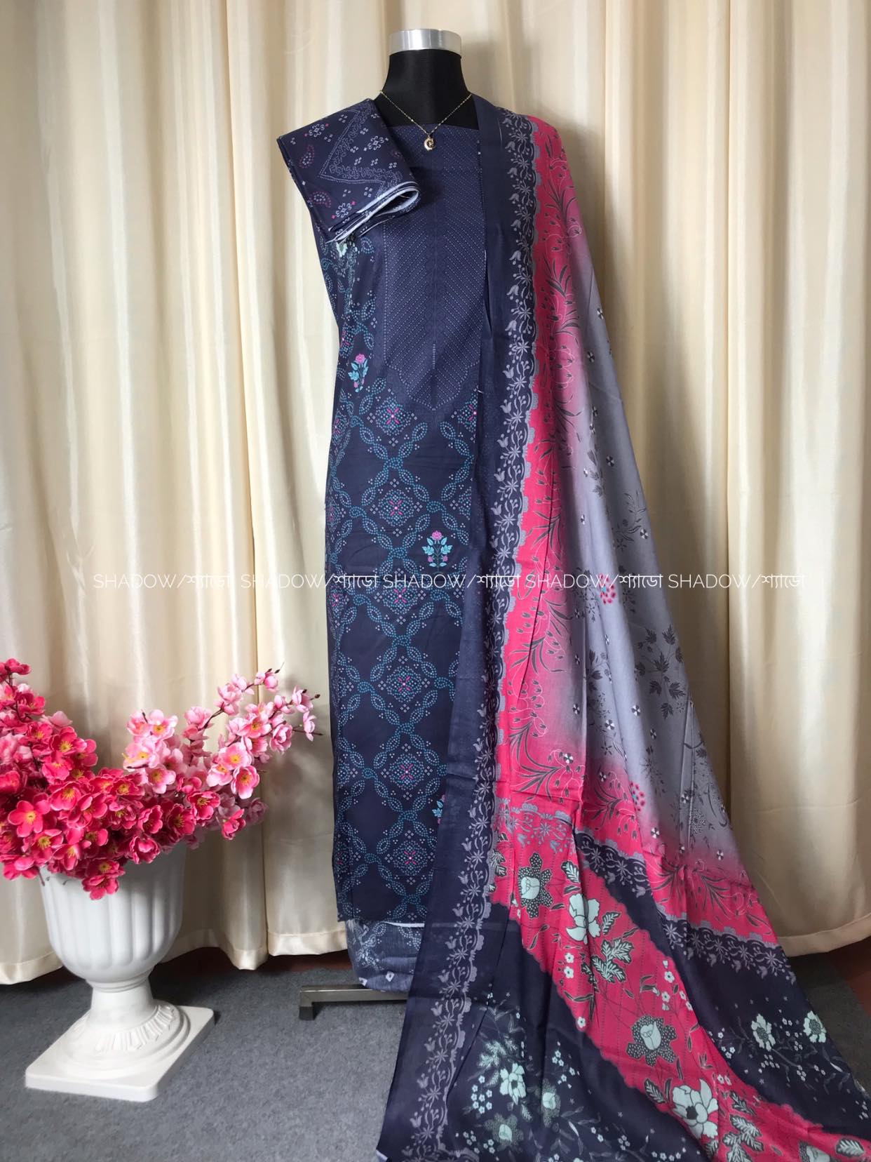 • ওড়না- ৯০ইঞ্চি প্রায় ৫/৬ হাত পাশে  ২হাত থেকে একটু বেশী।